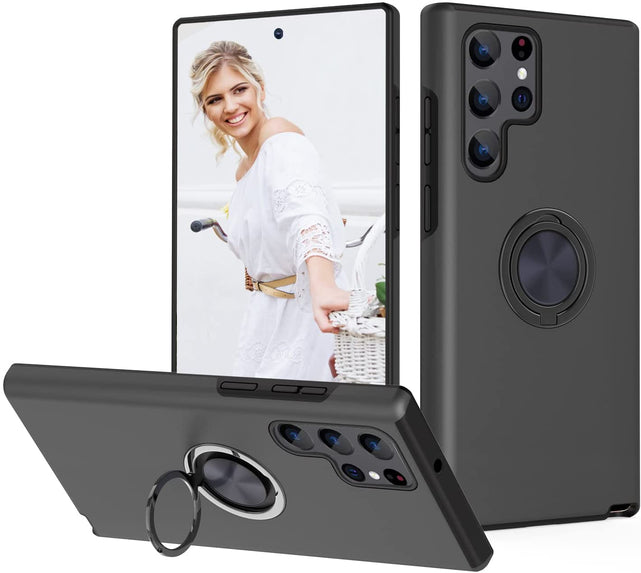- 【Tough Rugged Ring Stand Holder】The Samsung Galaxy S22 Ultra 5G case with built-in 360 degree metal rotating diamond invisible finger grip ring kickstand for optimal video viewing angle.Also allow for easier operation with single hand,and provides extra grip.