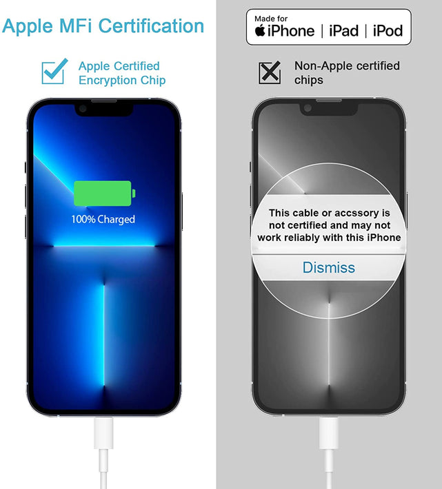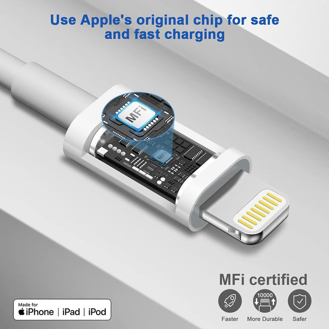 - ⚡【Original Apple MFi Certified Accessories】With the Original Apple MFi Certified chip,the USB C to Lightning cord supports iOS versions including all future updates.Also the USB-C PD adapter and Type-C to Lightning Cable will perfectly protect both your iphone/ipad devices also the brick/ cord against overheating, excessive current, short-circuit and overcharging.Apple MFi licensed iPhone charging cable promises no warning message pops up. Ensures fast charging and you could connect your MacBook/Pro with iPhone/iPad/iPod directly and get the 480 Mbps sync data transfer speed!
