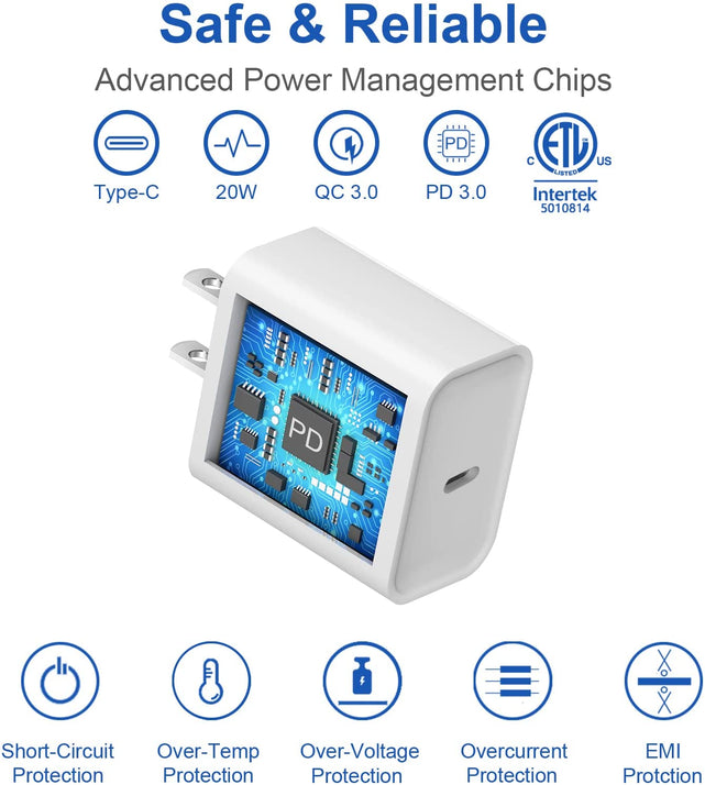 - ⚡【Apple iPhone Charger】: This fast charging sets included 2 pack 20W PD wall chargers and 2 pack USB-C cables,which can be used separately.Compatible with iPhone 13 /13 Mini /13 Pro /13 Pro Max /12 /12 Mini /12 Pro /12 Pro Max /iPhone 11 /11 Pro /11 Pro Max /iPhone XR /X /XS /XS Max /iPhone 8 Plus /SE 2020/iPad Pro, AirPods Pro; Samsung Galaxy S10 /S10e /S9 /S8 /Note 9 /Note 8;and other USB-C enabled devices.