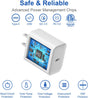 - ⚡【Safe & Reliable】: This 20W PD adapter Wall chargers and USB-C lightning cable/cord FAST Charger Certified by UL, ETL, FCC, CE, ROHS.It is safe to use this PD adapter Wall charger and USB-C lightning cable/cord to charge for your iphone/ipad/airpods.You will get: 2* 20W PD 3.0 Wall FAST Charger and 2*6FT Apple MFi Certified USB C to Lightning Cable, 1-Year replacement guarantee. If you have any concerns, please do not hesitate to contact us! We promise to solve your problems within 12 Hrs!