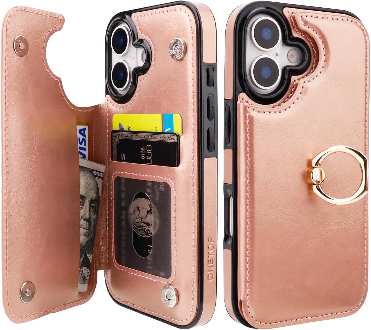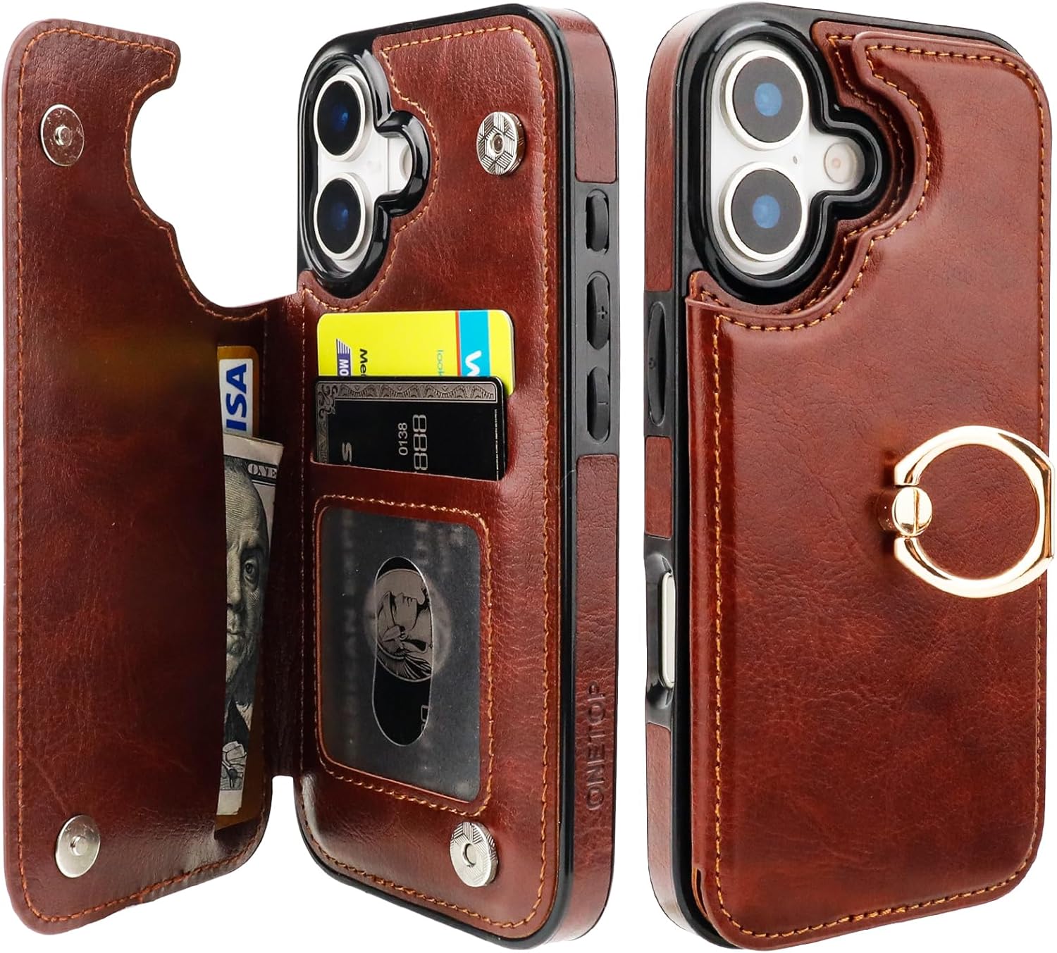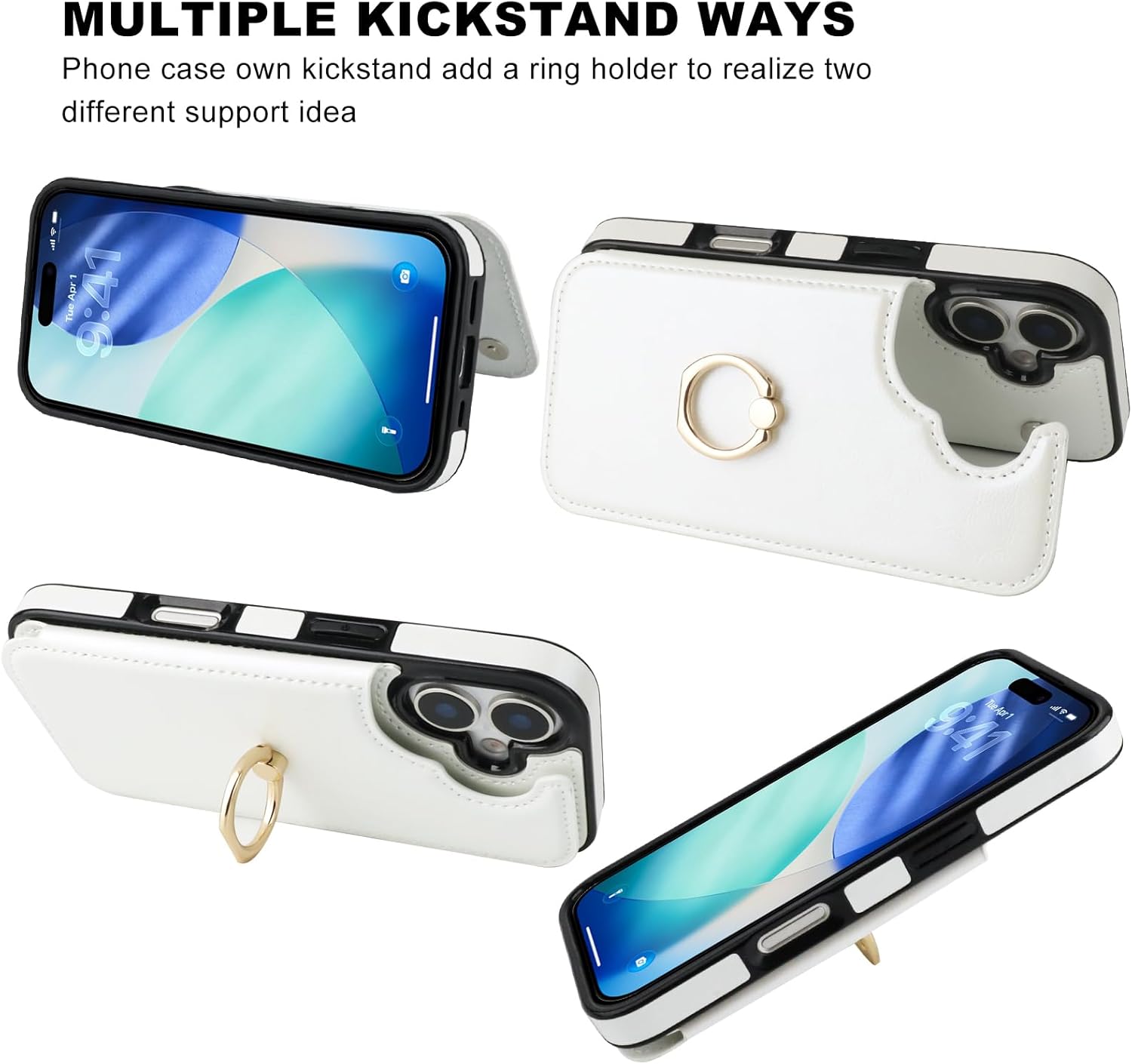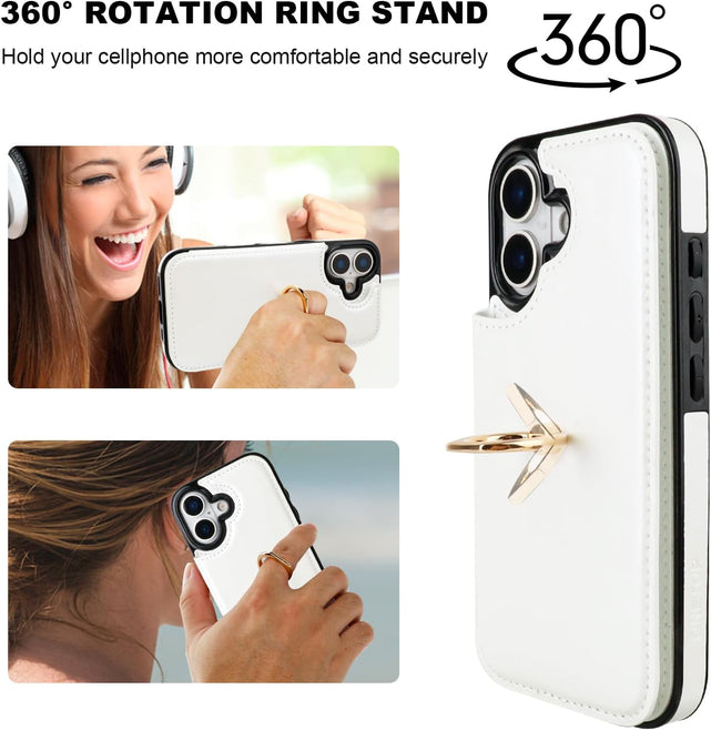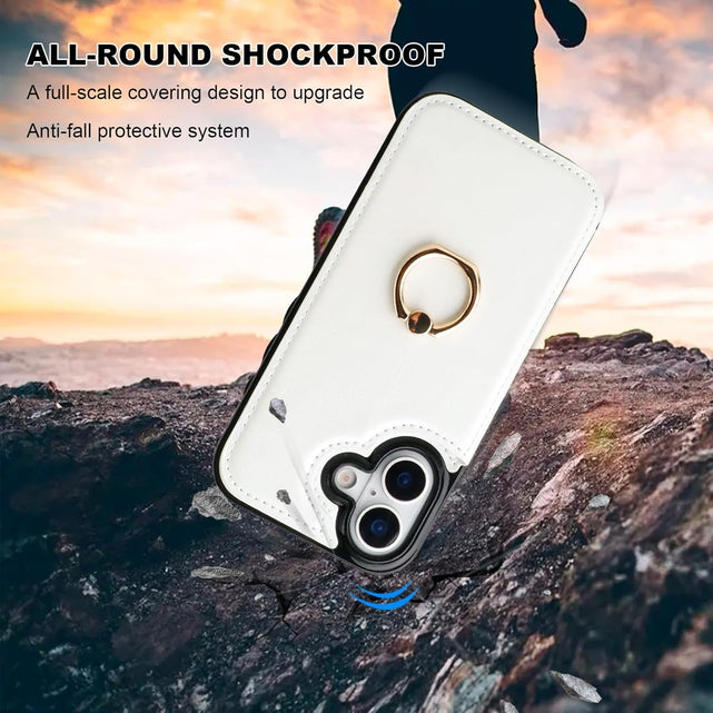 iPhone 17 360° Rotation Ring Kickstand PU Leather Cover