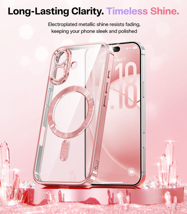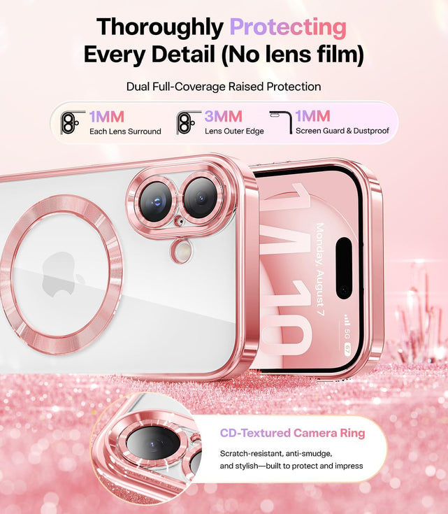 METALLIC ELEGANCE & CRYSTAL-CLARITY: Featuring metallic accents along the edges, camera ring, and MagSafe ring, this clear case combines style with durability. Designed using advanced German optical technology, it resists yellowing over time and keeps your iPhone 17 looking brand new—all while showcasing its original beauty.