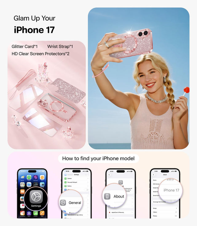 EXPRESS YOURSELF WITH PERSONALIZED DECOR: Designed exclusively for iPhone 17 (6.3"), this case includes a wrist strap and glitter card so you can customize your phone to match your style—and make it easier to carry. The electroplated finish offers a radiant metallic shine, reflecting a brilliant life that never fades. Perfect for women and girls who want to showcase their unique personality.