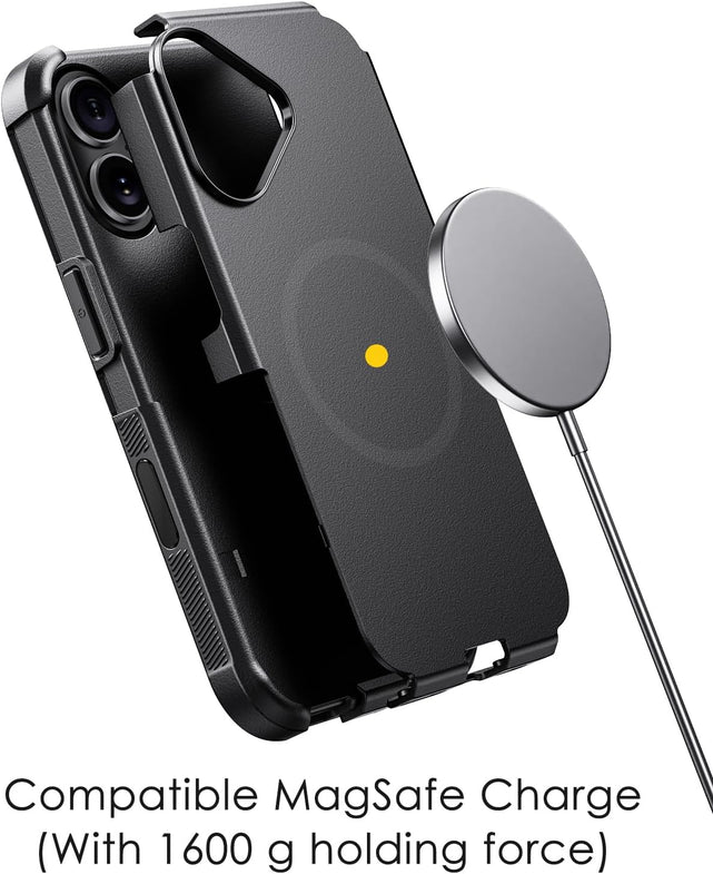 Compatible with MagSafe: Stronger magnetic lock, built-in magnets with 1600 g holding force for faster and easier wireless charging, (No heat, fast and continuous charging to 100%), and provides a secure lock for any MagSafe accessories
