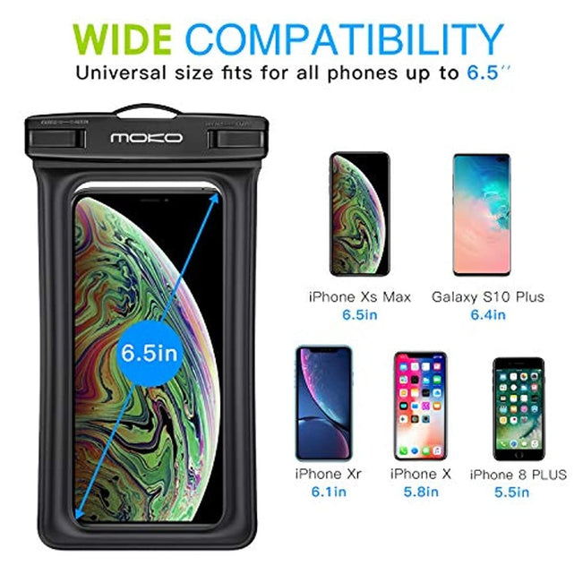 MoKo Floating Waterproof Phone Pouch, Floatable Phone Case Dry Bag with Lanyard Armband Compatible with iPhone 11/11 Pro, X/Xs/Xr/Xs Max, 8/7/6s Plus, Samsung S10/S9/S8 Plus, S10e, S20, Note 10