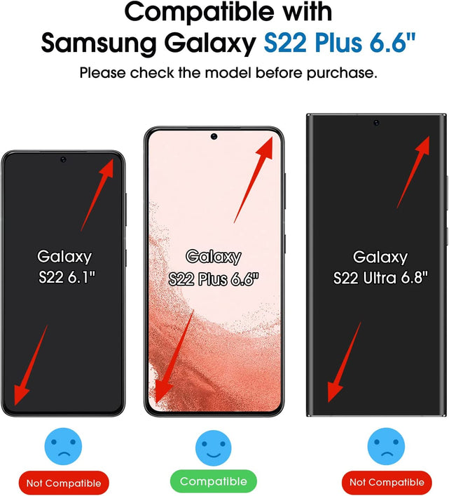 - 【Only Works】 For Samsung Galaxy S22 Plus / S22 + 5G 6.6 inch 2022. Please check your phone model before buying this glass screen protector.