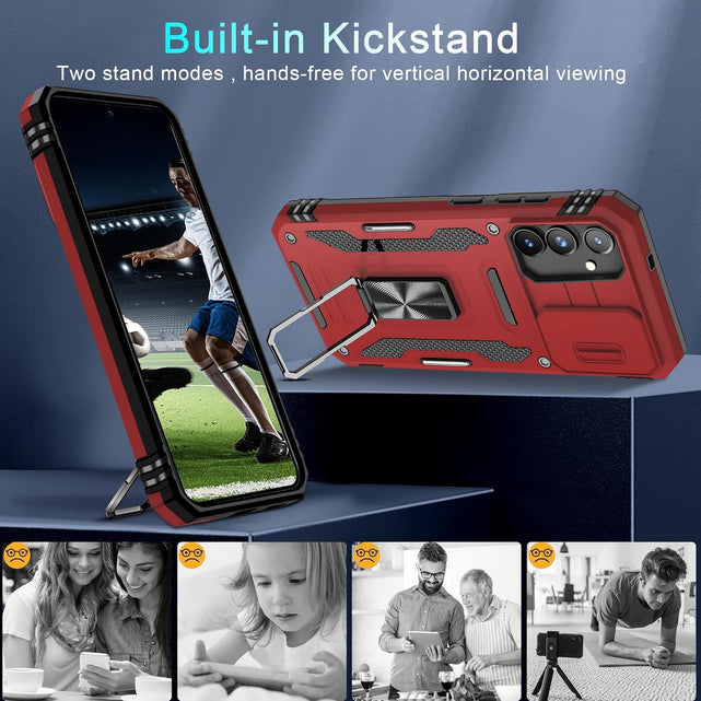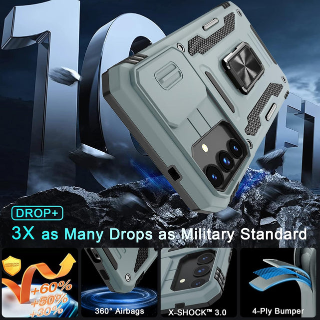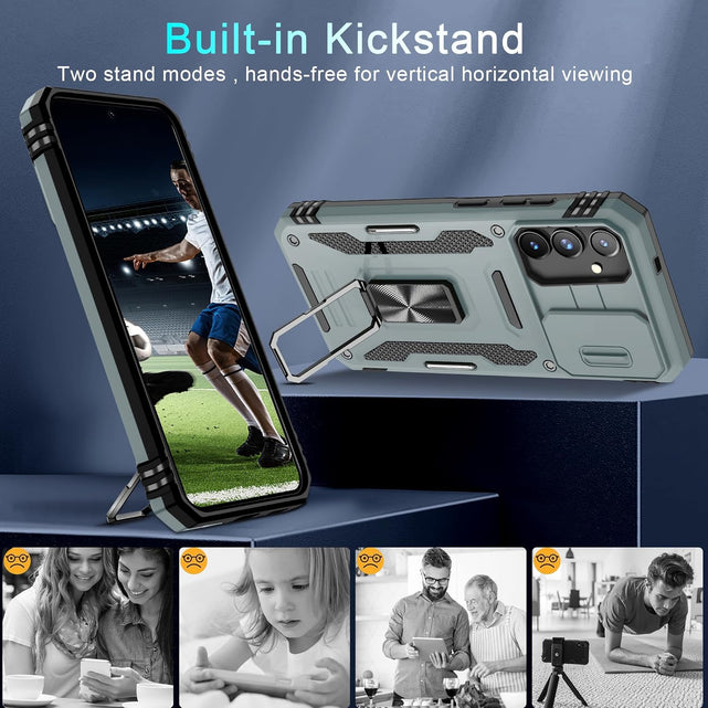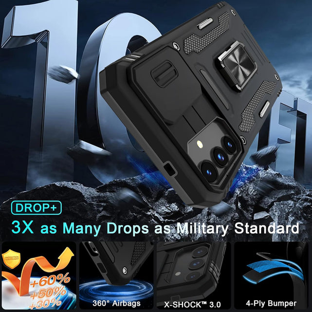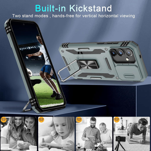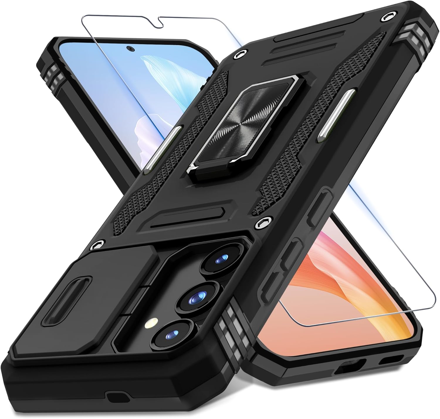 Armor Case with sliding camera cover specially designed for Samsung Galaxy S25+ Plus 6.7 Inch (2025 released). NOT fit for other device! The precise cut out fits each button,camera,speakers and ports precisely, easy to press and access