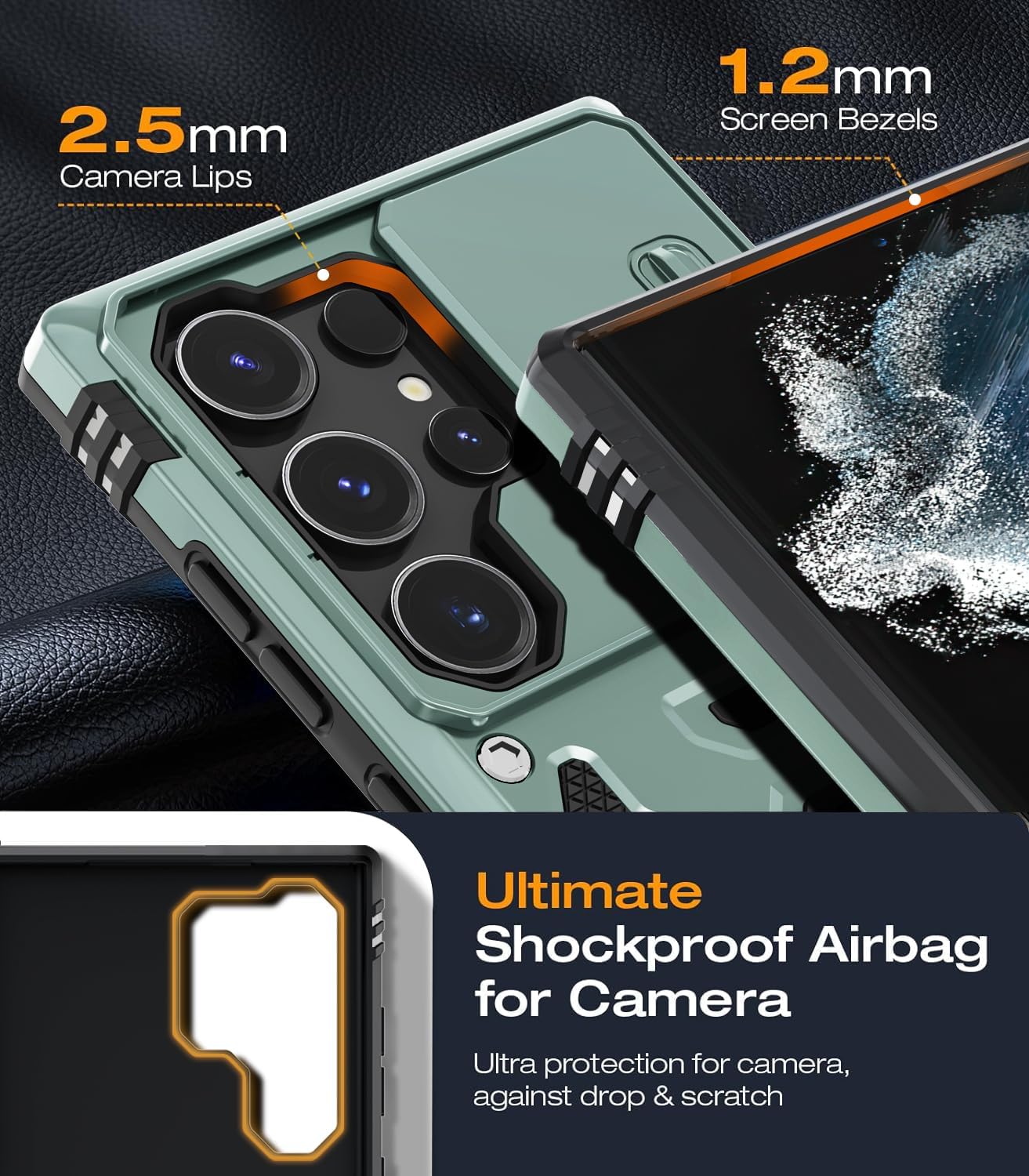 Camera Protection:Sliding camera cover protect the camera lens from getting scratched and scuffed.Enhanced 1.8 mm screen lips and glass screen protector provide the screen comprehensive protection.Ensuring every aspect of your phone is protected with uniquely