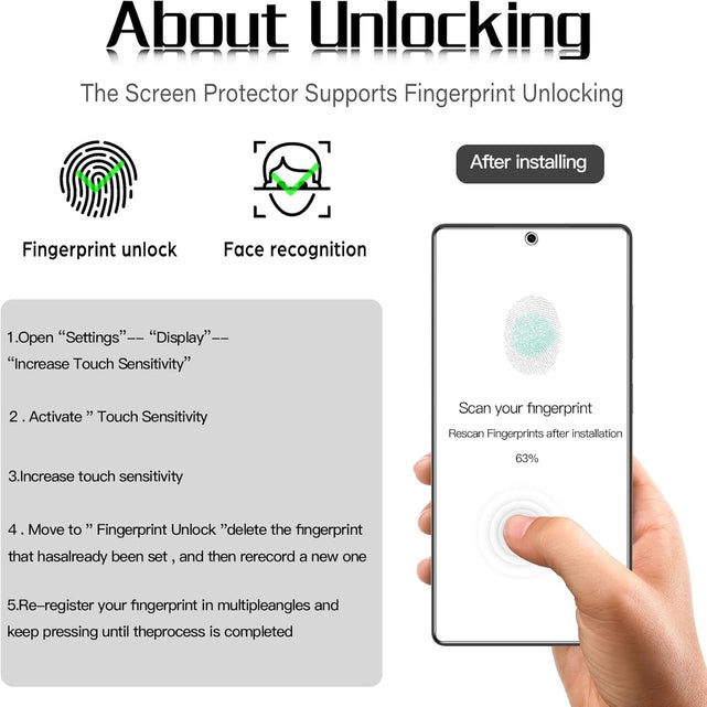 After installing Galaxy S25 Ultra Clear Case and Screen Protector :. Move to " Fingerprint Unlock "delete the fingerprint that hasalready been set , and then rerecord a new one Re-register your fingerprint in multipleangles and keep pressing until theprocess is completed