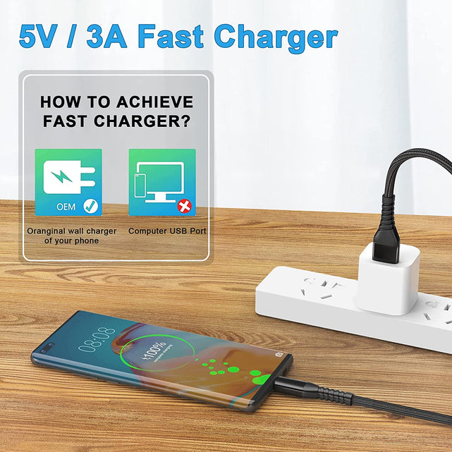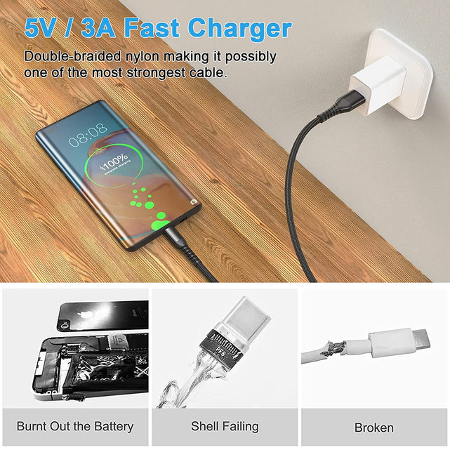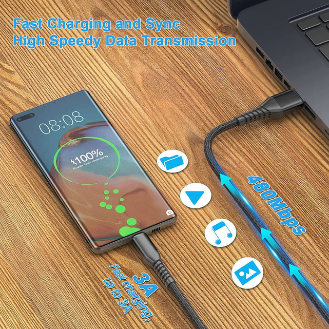 - USB 2.0 Fast Charging & Data Transfer : USB-C Cable Transfer speed up to 480Mb / s, 3A Fast Charger, Data Transfer and Power Charging 2 in 1.Support from both sides can be inserted "positive and negative insert" function, can withstand 10,000 times repeatedly plug.Not compatible with iPhone or Micro USB!