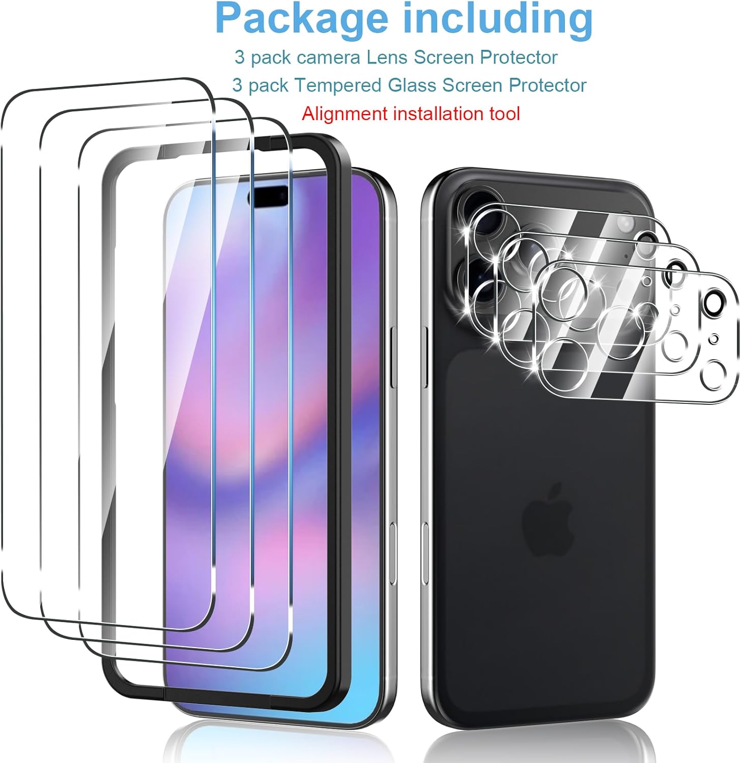 3 Pack for 17 Pro Max Screen Protector + [3 Pack] 17 Pro Max Camera Lens Tempered Glass Protector.9H Hardness.Support Fingerprint Unlock, Bubble-Free.Easy Installation