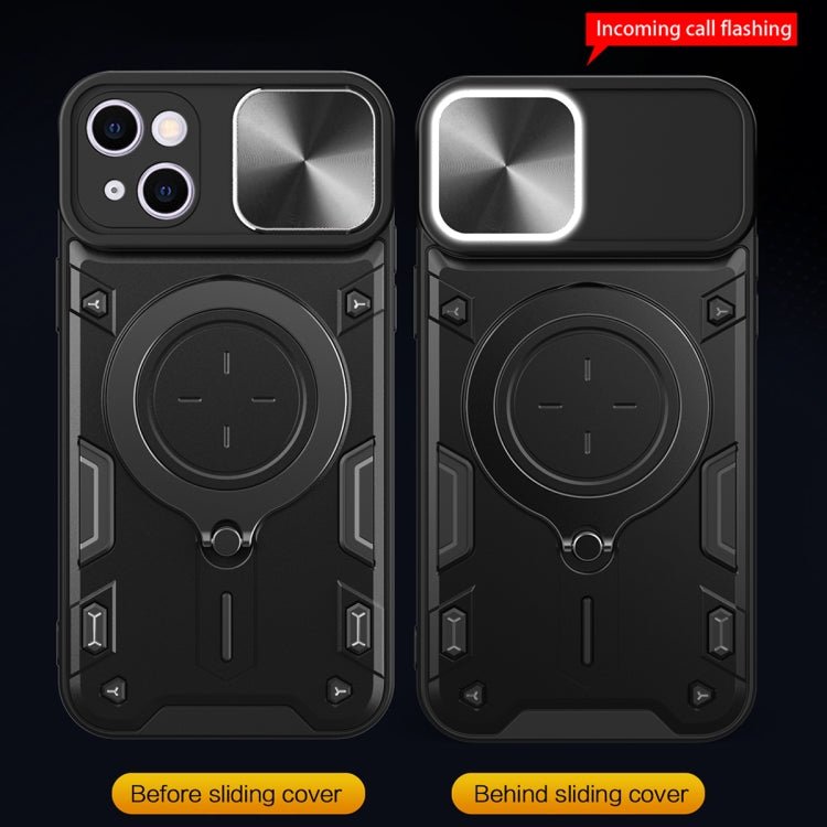 CD Texture Sliding Camshield Magnetic Holder Phone Case, For iPhone 15 Plus
