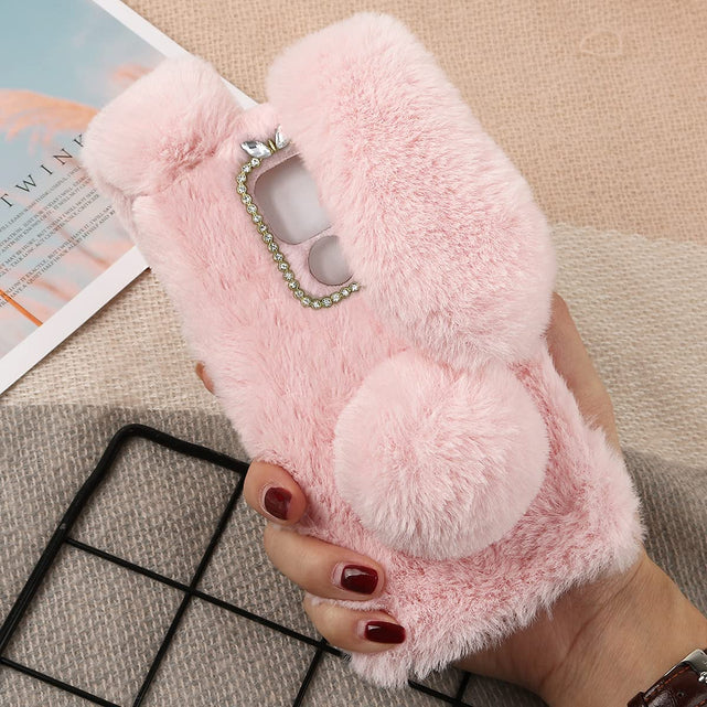 Fluffy Fur Plush Case for Moto G Play Cute Bunny Furry Girly Cover