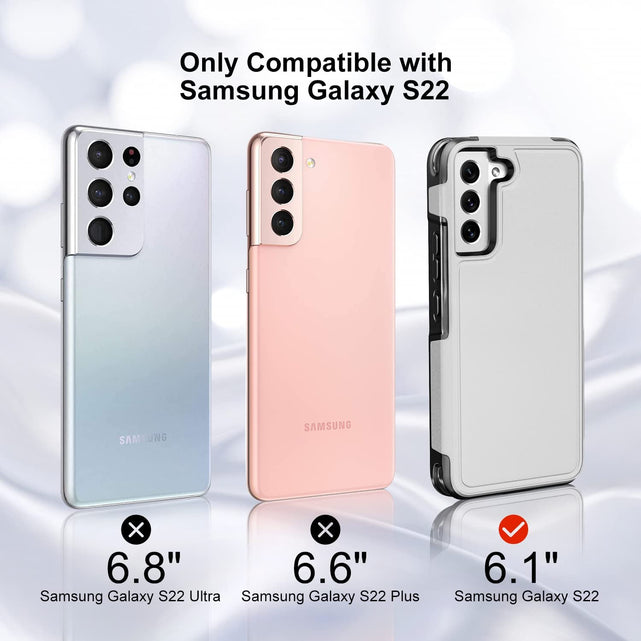 - 【Compatible】ONLY compatible with Samsung Galaxy S22 6.1 inch. Heavy Duty Samsung Galaxy S22 Case, easily access buttons, precisely cutouts for speakers, charging ports, and cameras. Easy to install and remove the Galaxy S22.