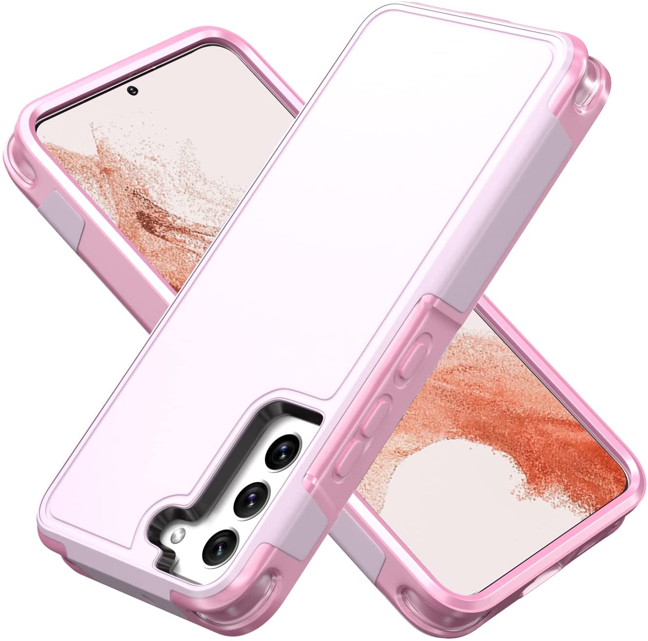 - 【Double layer Drop-proof design】Unique detachable Double layer design & 2 in 1 layers protection: Shockproof, Dropproof and Dustproof. This Galaxy S22 case consists of high quality hard PC shell and TPU soft rubber shell, the case has raised edges to effectively protect your phone camera and phone screen from being shattered. At the same time does not affect the flash function.