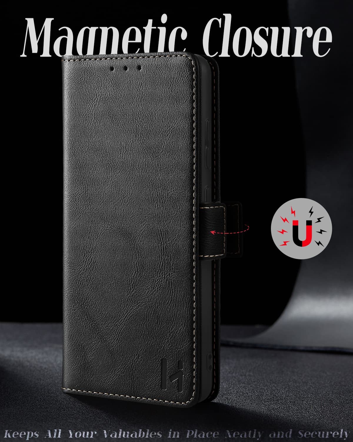 - 👍[STAND FEATURE & MAGNETIC CLOSURE]- Built-in kickstand feature can be switched to a horizontal position and acted as a firm stand. It will bring you more convenience for movie-watching, reading and video-chatting etc. Magnetic flip closure to keep it securely and firmly closed so as to protect your phone screen, cards, cash, etc.