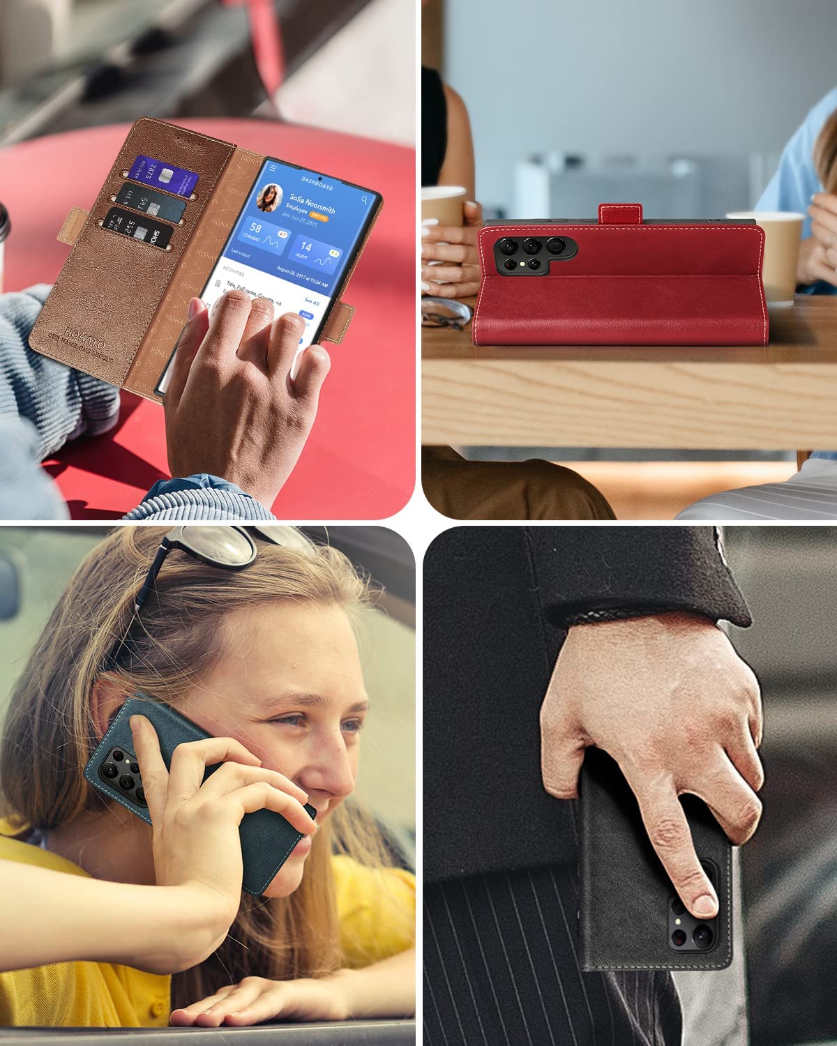 - 👍[Premium PU Leather]-Galaxy S22 ultra case made with Premium PU Leather,durable and fine sewing;Flexible durable soft TPU inner case provides a great dual-layer protection for your devive so as to protect your phone against scratches, bumps, shocks, dirt, daily wear and tear.