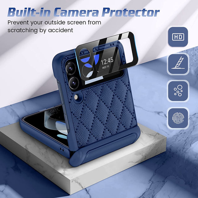 • [Built-in Sensitive Camera Lens Screen Protector] Z Flip 4 case with screen protector, built-in high quality 9H glass camera lens protector with a hassle-free touch response can provide a clear vision for the phone and prevent the screen from being scratched.