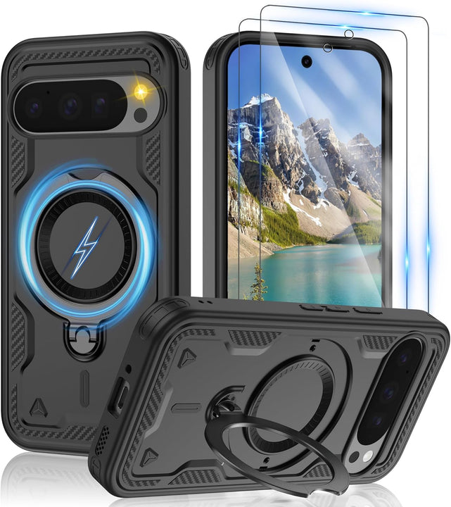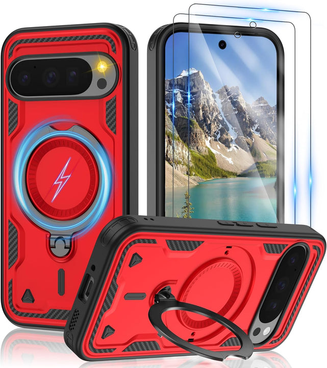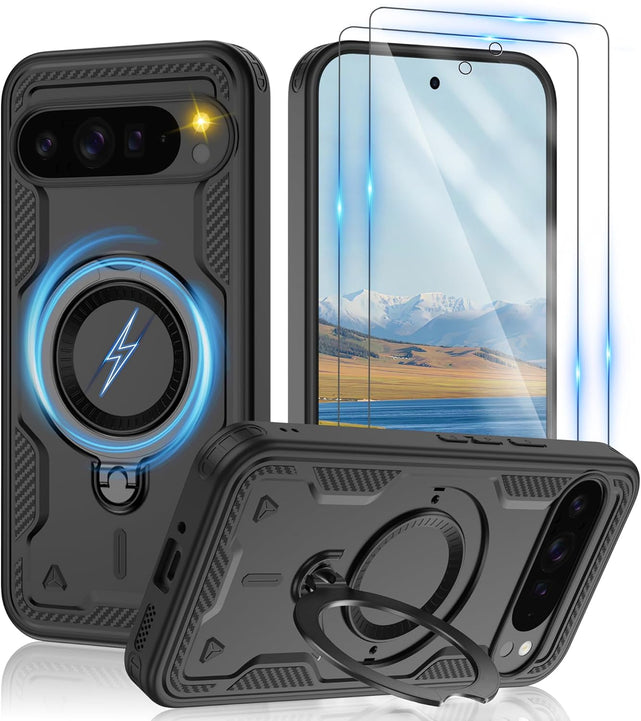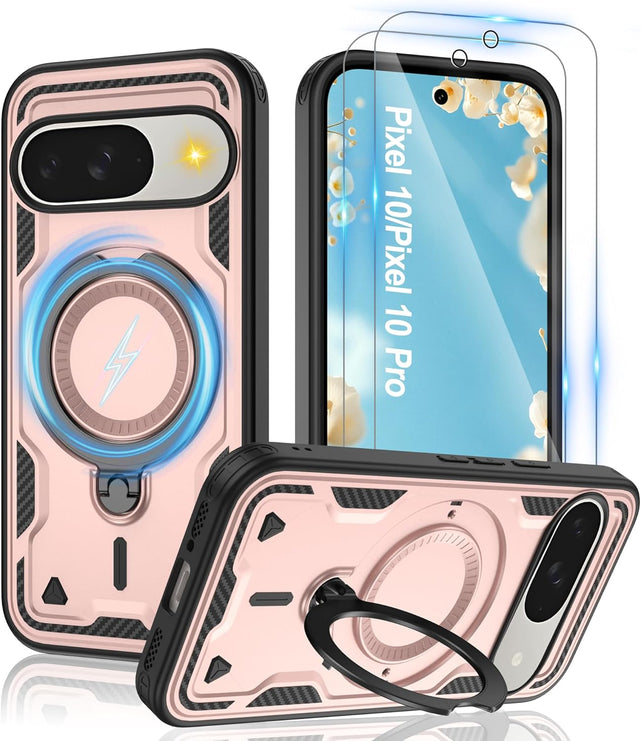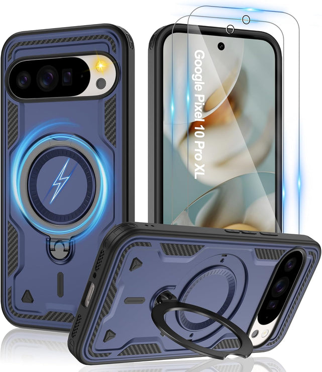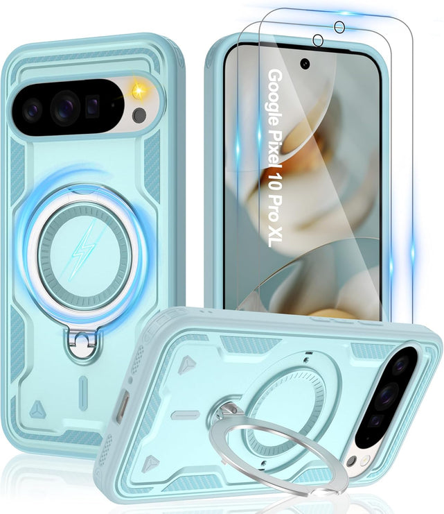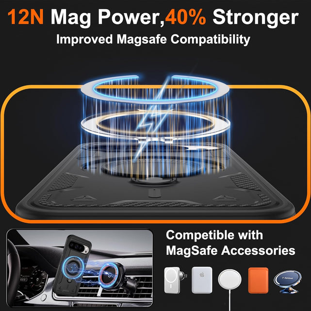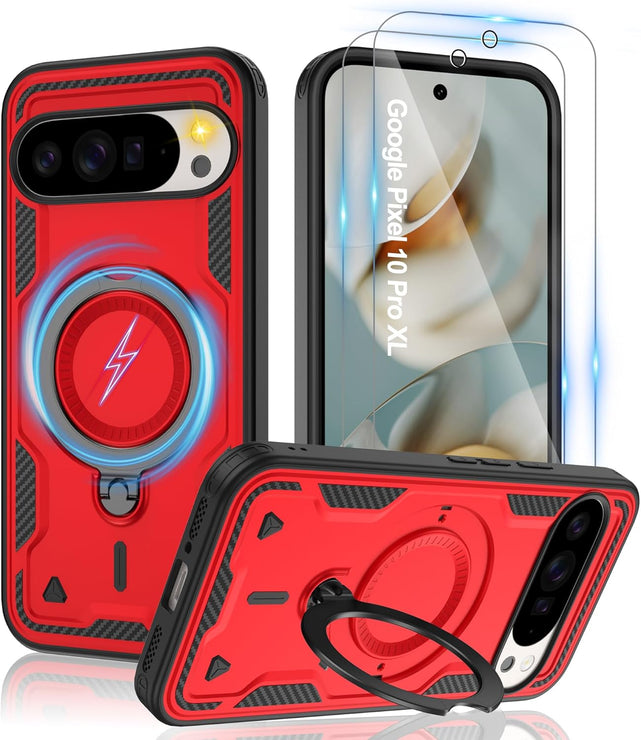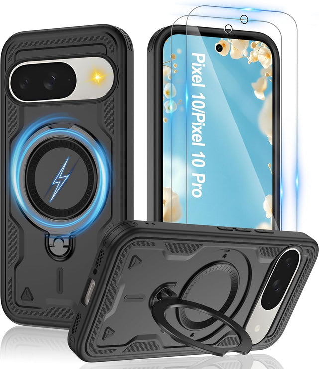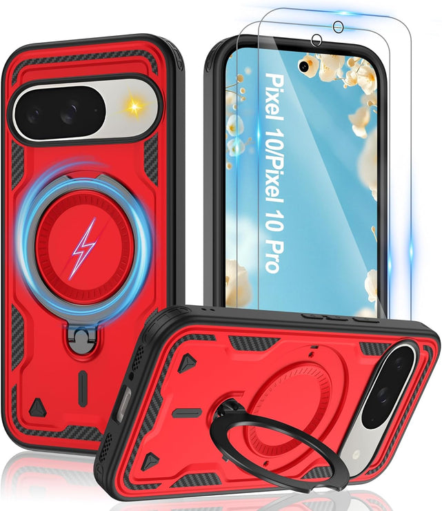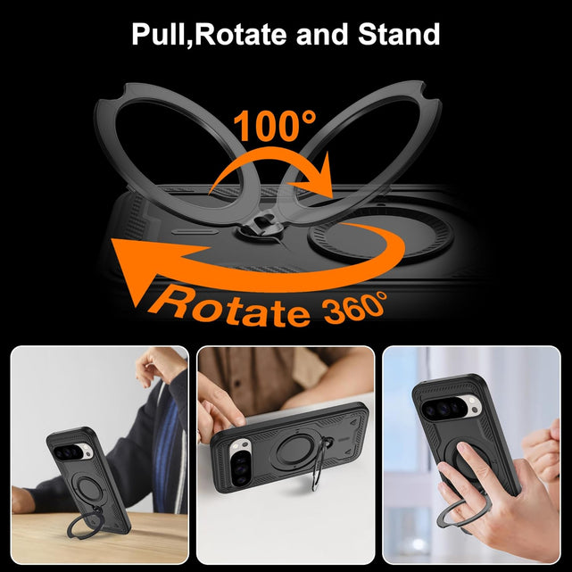 【Built-in Magnetic Foldable Invisible Stand】This Pixel 10 Pro XL case with magnetic folable ring stand Holder; provide a adjustable vertical and horizontal stand style, meet all your needs