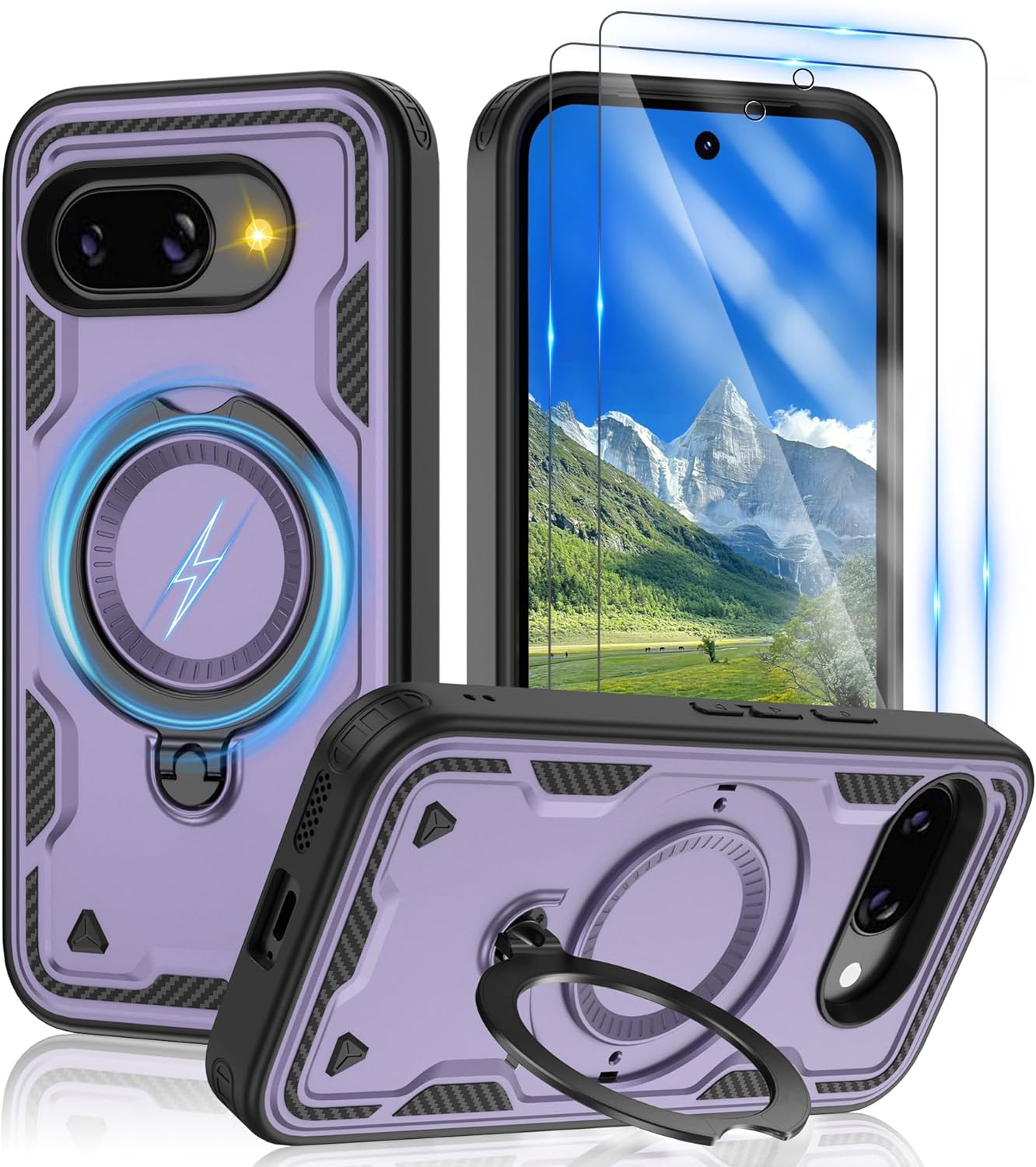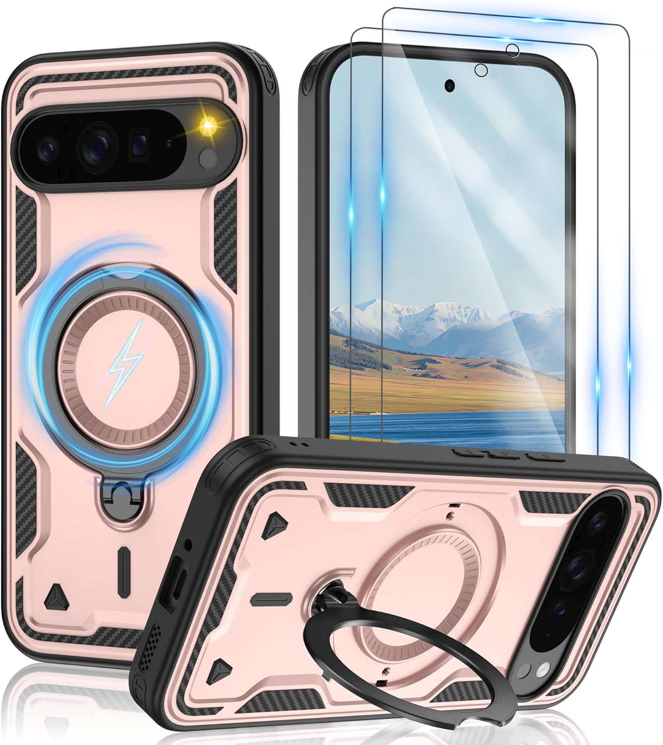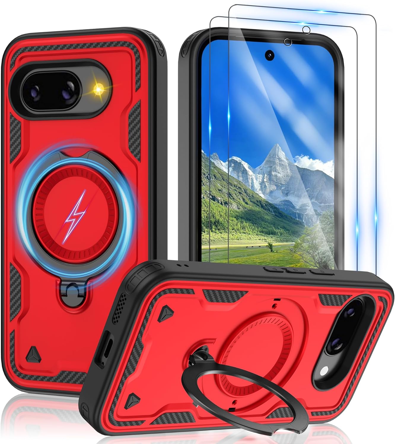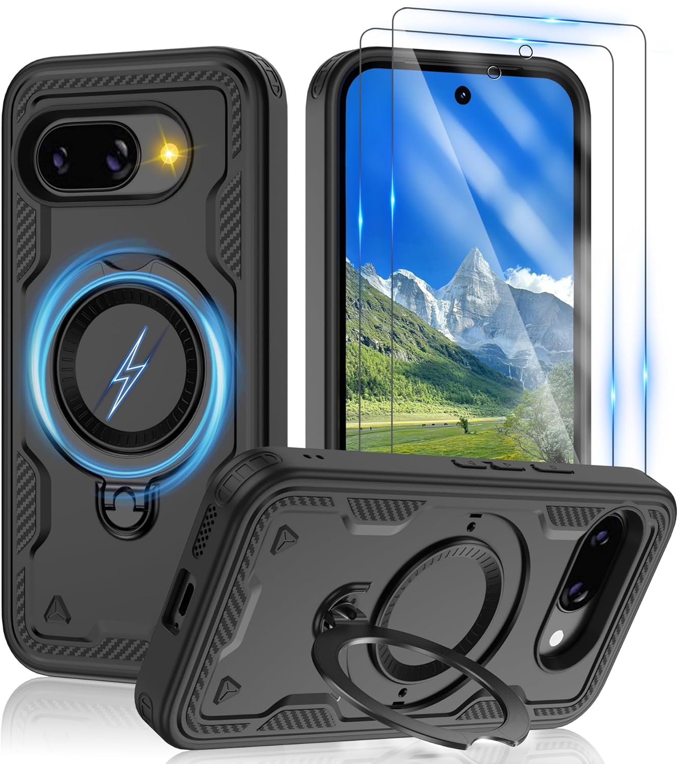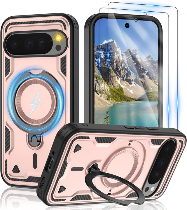 【Built-in Magnetic Foldable Invisible Stand】This Pixel 10 Pro XL case with magnetic folable ring stand Holder; provide a adjustable vertical and horizontal stand style, meet all your needs