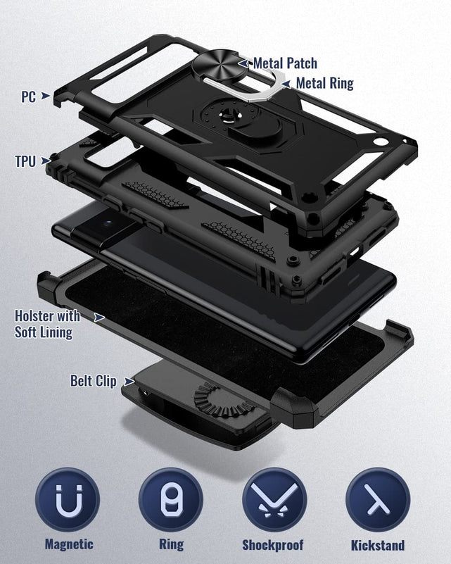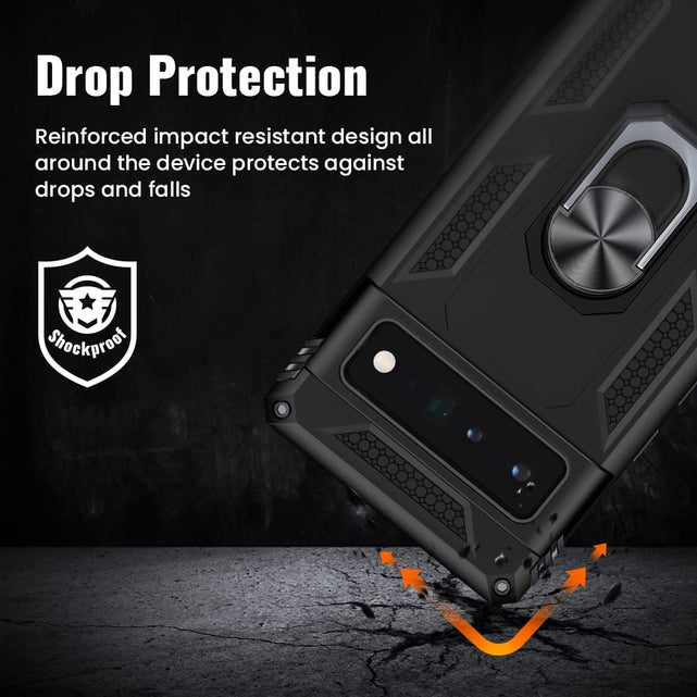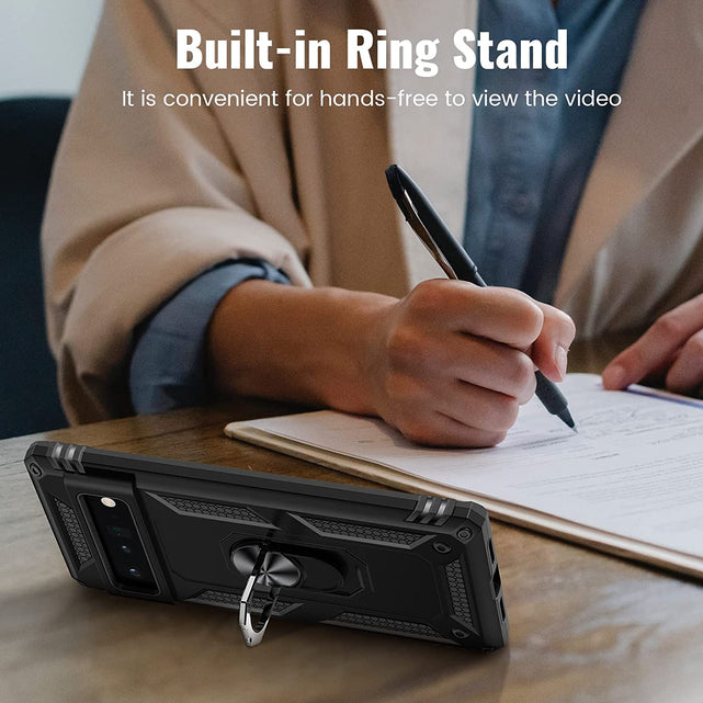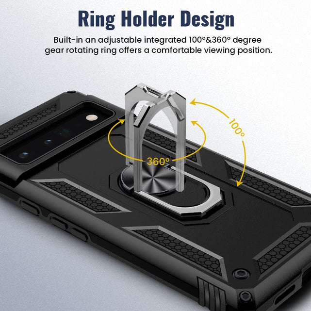 - 【Kickstand Support:】Google Pixel 6 Pro case with stand rotatable [Only Horizontal Stand] for convenient landscape viewing angles and hands-free movie, video, pictures.