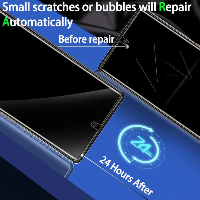 - [Flexible Materials & Bubble Free] Please Note: The screen protector is not tempered glass, it is made of high quality thermoplastic polyurethane (TPU), one of the flexible materials, allows a full coverage of the curved edges of your Pixel 6 Pro with maximum scratch resistance. Use High-permeability glue with strong adhesion, automatic repair of small scratches and bubbles within 24 hours.