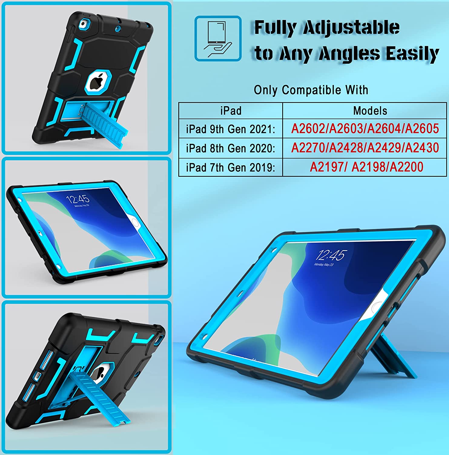- 【Kids Proof】Three Layer design combines a premium shockproof silicone outer layer with a hard PC cover; perfect ipad 10.2 case for children and withstands accidental drop, bump and shock damage.