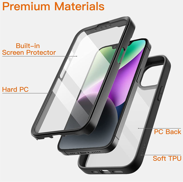 iPhone 14 Built in Screen Protector Full Body Transparent Case