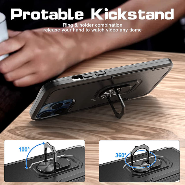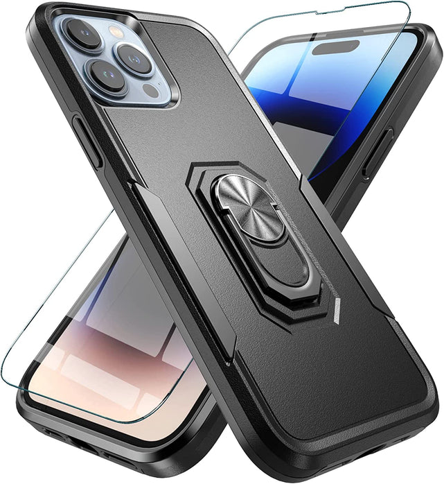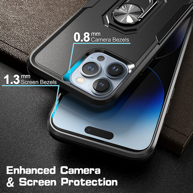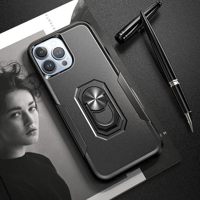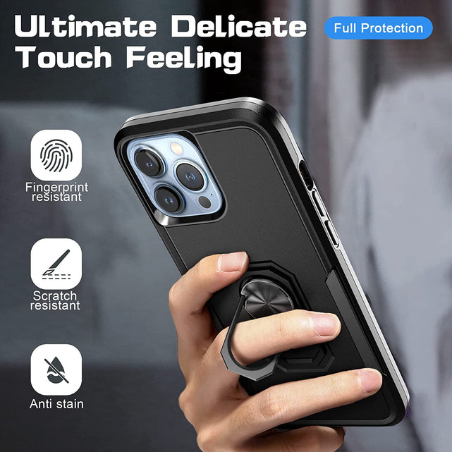 iPhone 14 Pro Max Hybrid Slim Fit Magnetic Ring Car Mount Kickstand Case