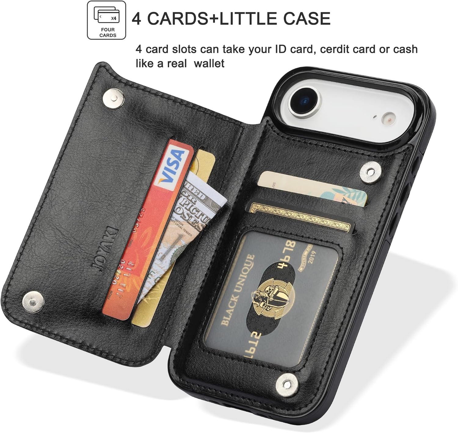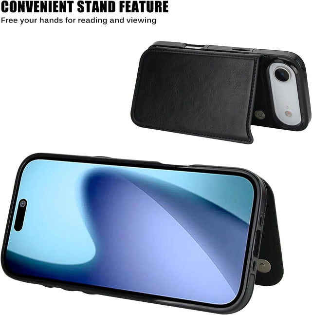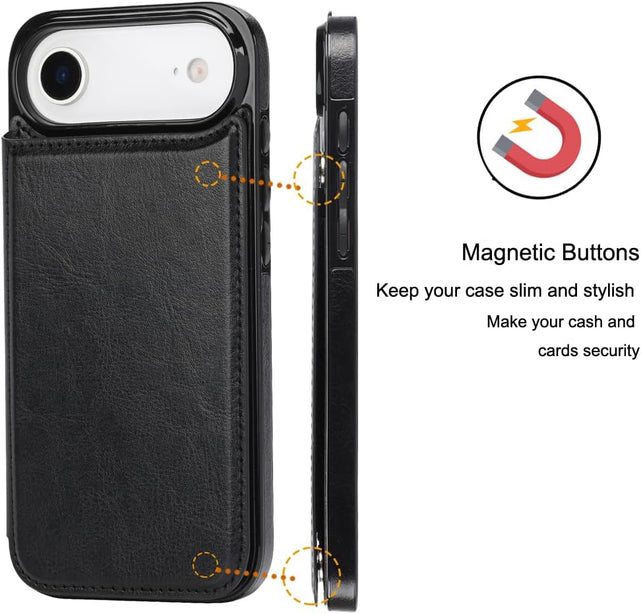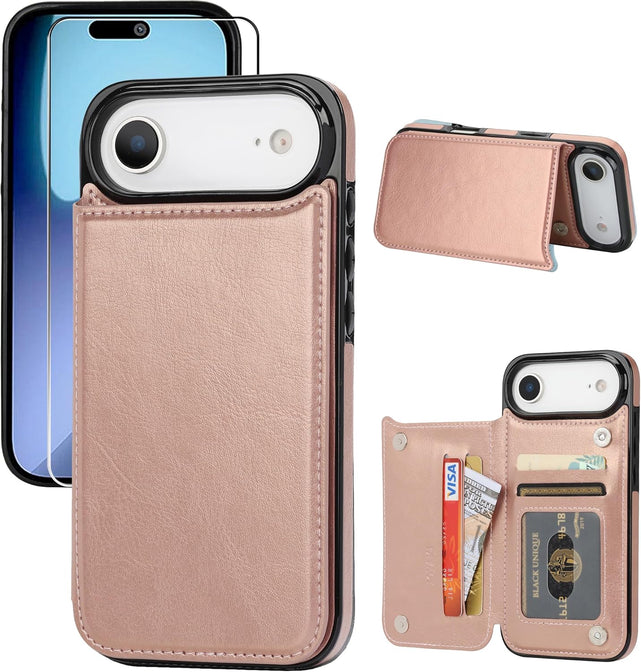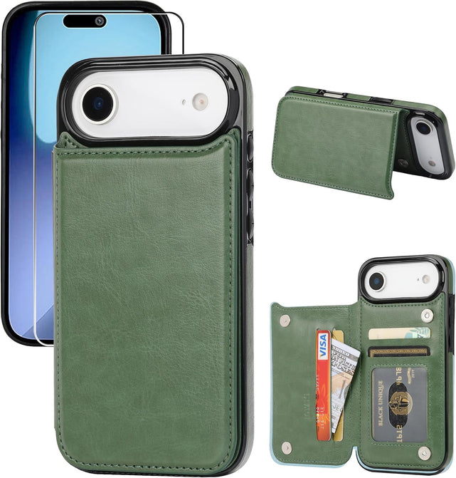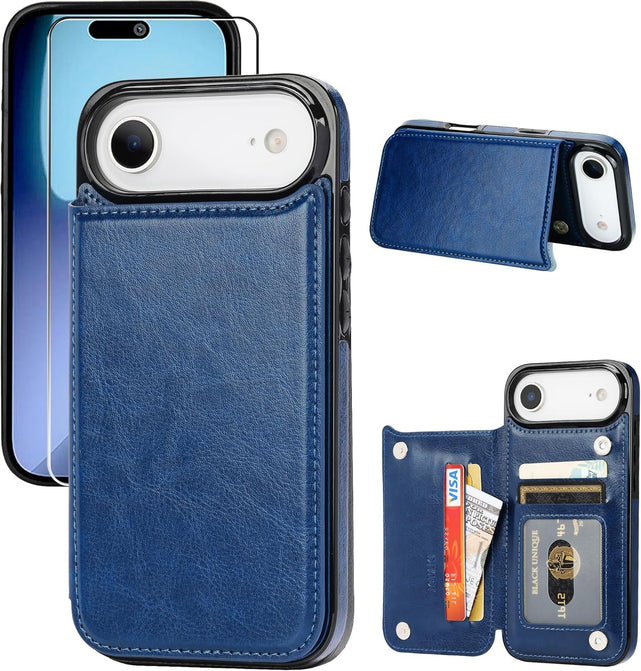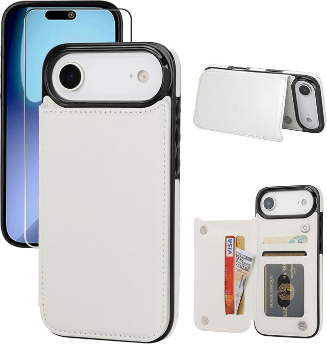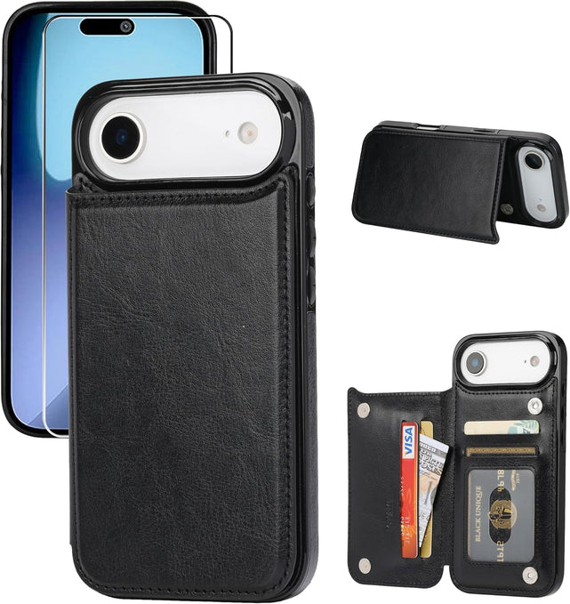 iPhone 17 Air PU Leather Kickstand Card Slots Case with Screen Protecor