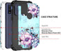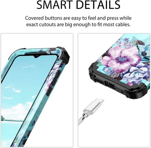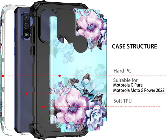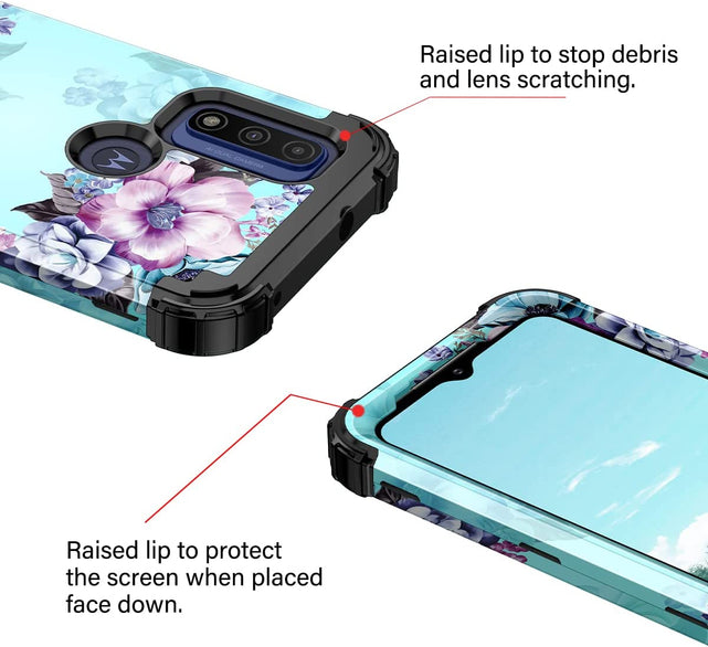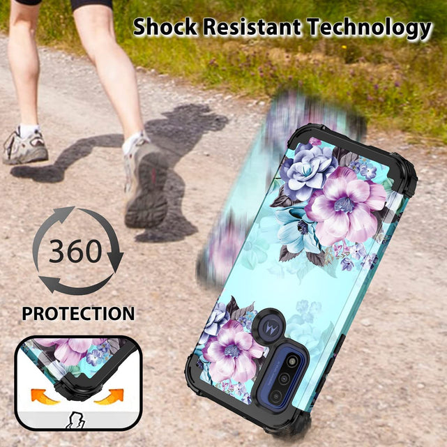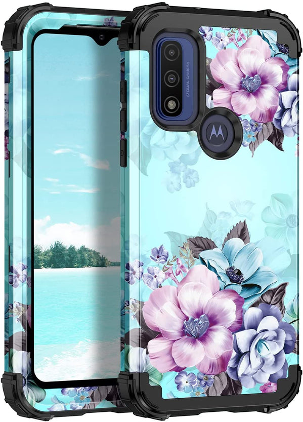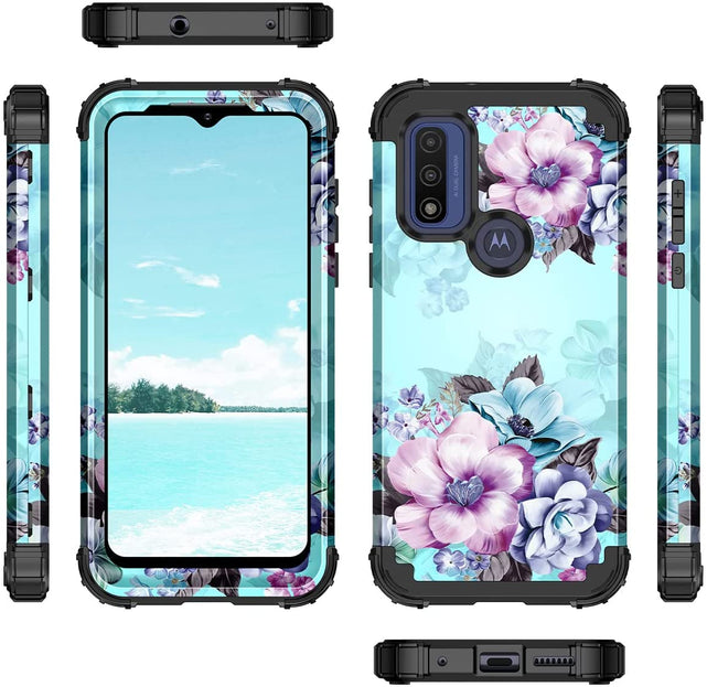 Moto G Power Case, Floral Three Layer Heavy Duty Sturdy Full Body Protective Cover