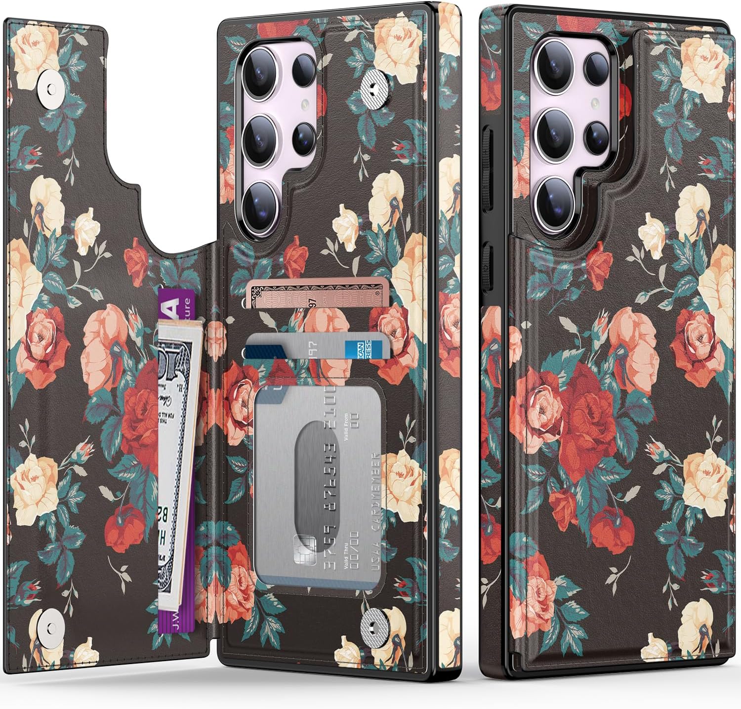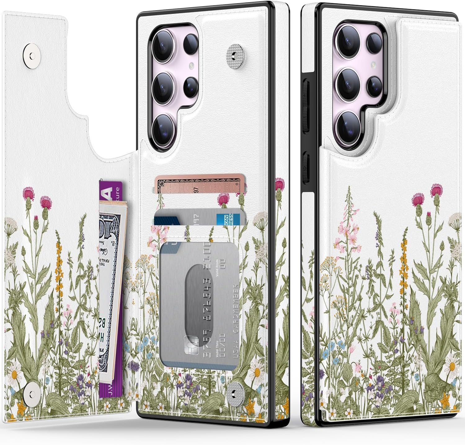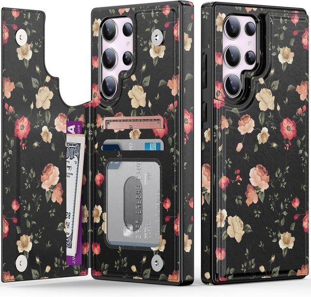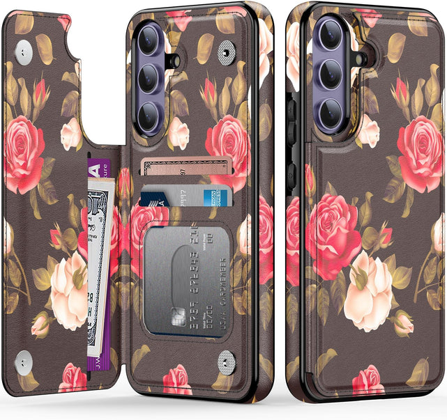 Stylish and Trendy Design: LETO Samsung Galaxy S25 Plus Wallet Case features a fashionable flower floral design, adding a touch of elegance to your phone.