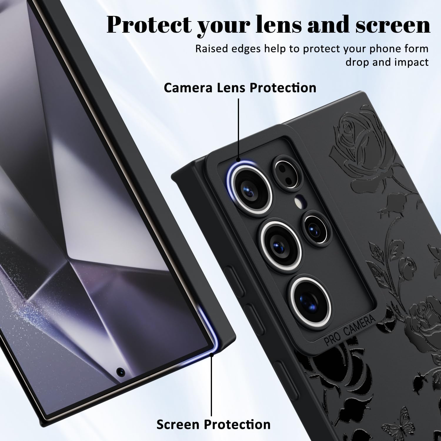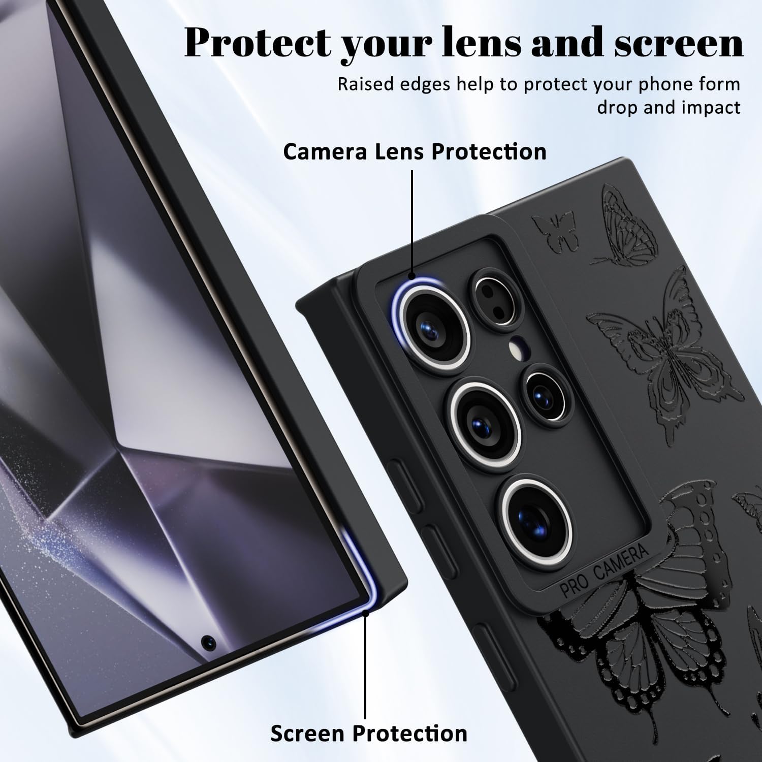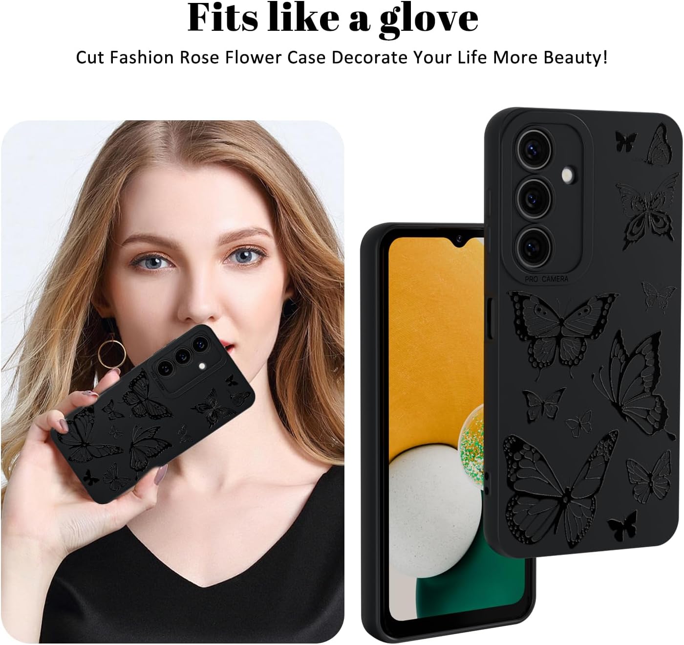 Fashionable Design:Aesthetic flower butterfly pattern and cool pure black design that make your Samsung Galaxy S25 Plus look unique and chic, more attractive and eye-catching.Advanced printing technology for long lasting and never fade