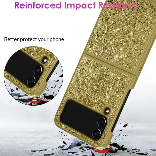 - This glitter Galaxy Z Flip 4 5G case make your phone luxury,fashion.the glitter pieces on the back of the back won not fall off.